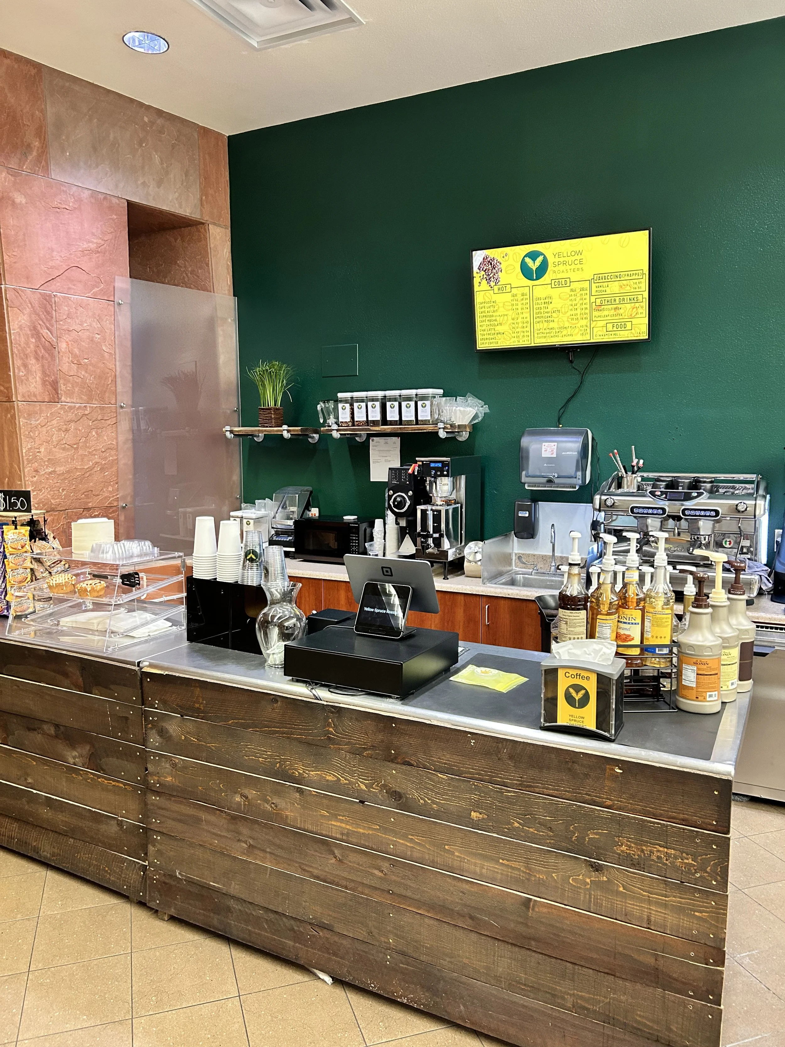 We founded Yellow Spruce in 2019 with one goal: to bring quality coffee to every cup. What began as a small roasting operation quickly grew into something more. In September 2020, we opened our first storefront in the heart of Old Town Scottsdale. In October 2023, we expanded that space with an adjoining wine bar, where we now serve local Arizona wines, craft beers, and our signature espresso martinis. In August 2024, we opened our second location inside the Civic Center Library café space, bringing our signature blends and warm service to a whole new corner of the community.